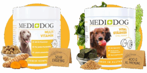 Gelegentlich benötigen Hunde etwas Hilfestellung – am besten ganz natürlich, getreidefrei und einfach zu verabreichen. Die hoch dosierten MEDIDOG Multi Vitamin Tabletten stärken mit ihrem Vitamin-B-Komplex aus Biotin, Folsäure und weiteren wichtigen Vitaminen gezielt die körpereigene Abwehr. Die kaltgepressten MEDIDOG Vitalstärker Drops auf Basis von Lammfleisch sind mit Spirulina, Bockshornkleesamen, Chlorella, Algenöl, Ginkgoblättern und Schizochytriumpulver angereichert. https://medipet-shop.de
