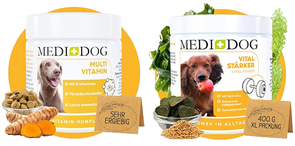 Gelegentlich benötigen Hunde etwas Hilfestellung – am besten ganz natürlich, getreidefrei und einfach zu verabreichen. Die hoch dosierten MEDIDOG Multi Vitamin Tabletten stärken mit ihrem Vitamin-B-Komplex aus Biotin, Folsäure und weiteren wichtigen Vitaminen gezielt die körpereigene Abwehr. Die kaltgepressten MEDIDOG Vitalstärker Drops auf Basis von Lammfleisch sind mit Spirulina, Bockshornkleesamen, Chlorella, Algenöl, Ginkgoblättern und Schizochytriumpulver angereichert. https://medipet-shop.de