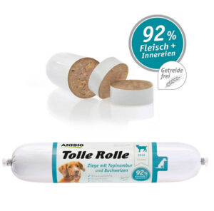Die Tolle Rolle gibt’s als hypoallergene Rezeptur. Gehaltvolle Ziege mit ballaststoffreicher Topinambur und gesundem Buchweizen. Ideal für eine Ausschlussdiät, getreide und glutenfrei, mit Fleisch aus regionaler Haltung, gut zu portionieren und auch als Snack verwendbar. https://www.anibio.de