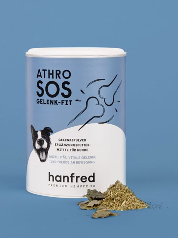Neben dem Relax SOS, das bei plötzlicher Aufregung für zuverlässige Beruhigung sorgt, hat hanfred hat weitere Produkte für akute Momente entwickelt. Athro SOS sorgt für schnelle Linderung bei akuten Gelenkschmerzen. Das rein pflanzliche Ergänzungsfuttermittel ist eine Kombination aus Hanf, Mariendistel, Teufelskralle und Brennnessel und passt ideal in die tägliche Routine – ob im Napf oder im Lieblingsfutter vermischt.