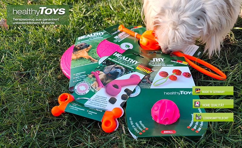 Nichts macht glücklicher, als ein Frisbee zu fangen, einem Ball hinterherzujagen oder einen anderen Gegenstand zu apportieren. Mit den Spielzeugen von healthy Toys ist das völlig unbedenklich, denn alle bestehen aus lebensmittelechten und geruchsneutralen Materialien. So lieben es Hunde und ihre Halter. Doch halten die Produkte auch, was sie versprechen?