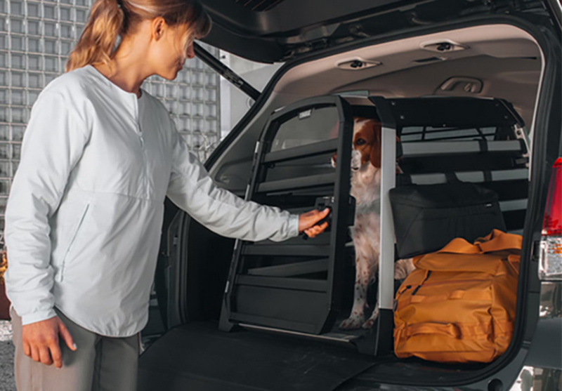 Die innovative Knautschzone ermöglicht bei einem Auffahrunfall ein kontrolliertes Zusammendrücken der Box, um das Verletzungsrisiko für die Passagiere auf dem Rücksitz zu reduzieren und gleichzeitig die Sicherheit des Hundes zu gewährleisten. Spätestens beim ersten Ein- und Aussteigen zeigt sich die ausgeklügelte Konstruktion: Dank der integrierten Glasfeder lässt sich die Tür mit einer Hand sanft öffnen und schließen.