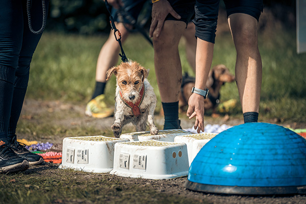 DOG GYM ist eine von zwölf Disziplinen, die bewegungsfreudige Menschen mit ihren Hunden ausprobieren können. Bei Fitness meets Physio wartet ein von Hundephysiotherapeutinnen erdachter und betreuter Parcours, der von Klassikern wie Cavalettis auch kleine Überraschungen für die Teilnehmer bereithält. Das ist besonders spannend für ältere oder Handicaphunde.